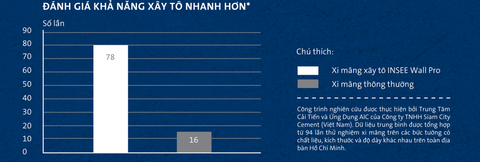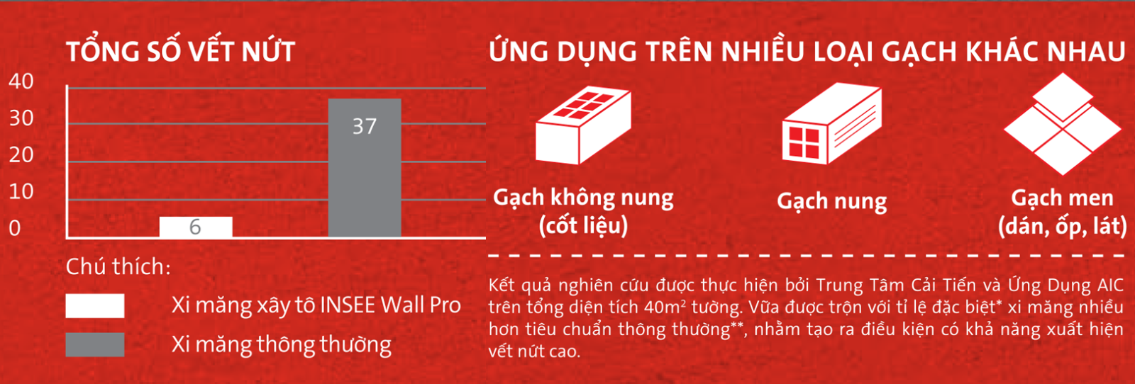Với công thức đột phá mới, Xi Măng Xây Tô INSEE Wall Pro 40kg được Quatest 3 chứng nhận tạo ra lượng vữa tương đương với bao xi măng xây tô 50kg thông thường.
